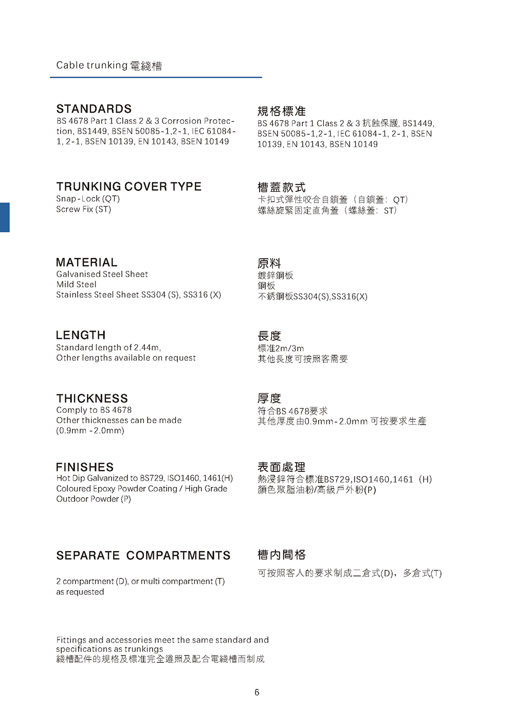 槽式桥架其各项技术指标均处于国内同行业先进水平,表面防腐层类别主要有热镀锌、电镀锌、粉末喷涂或镀锌后喷涂粉喷涂等方式。