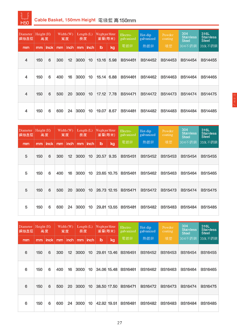 梯式桥架其各项技术指标均处于国内同行业先进水平,表面防腐层类别主要有热镀锌、电镀锌、粉末喷涂或镀锌后喷涂粉喷涂等方式。